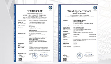 鋼結構制作、安裝一級資質,通過了ISO9001-2000質量管理體系的認證、ISO14000環(huán)境管理體系認證、ISO18000職業(yè)健康安全管理體系認證以及EN1090認證,美國AISC認證。客戶眾多